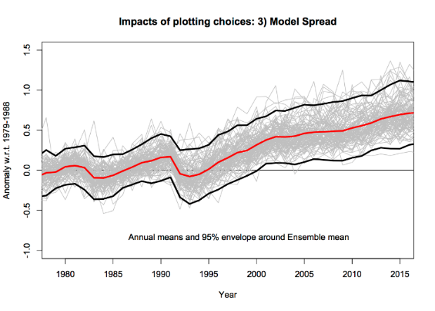 Spaghetti plots can be used to show the results from a range of different methodologies