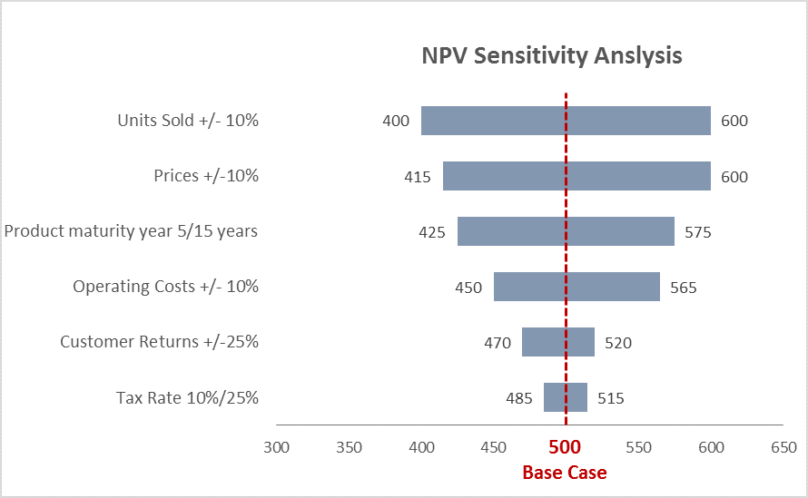 4.15.2 Tornado diagrams depict sensitivity of a result to changes in selected variables.